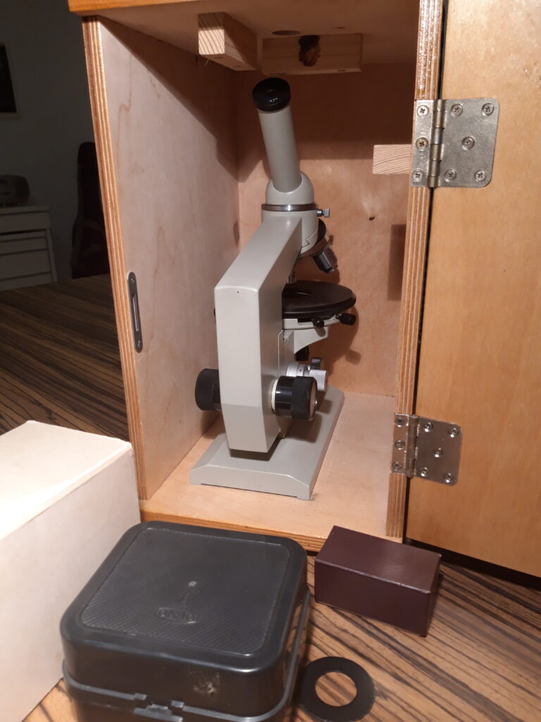 Aus dem Vereinsfundus wird das Mikroskop des Gesundheitswartes verkauft. Gut gepflegt, vollständig und in einem verschließbaren Transportkasten. Preisvorstellung: € 120,-